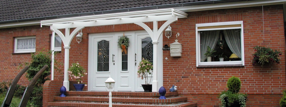 Das Vordach ist die Visitenkarte Ihres Hauses. Es ist ein attraktiver Blickfang und schützt vor Wind und Wetter. Wir bieten Ihnen eine große Auswahl von Vordächern aus Glas oder Kunststoff – optimal abgestimmt auf den Charakter Ihres Hauses und Ihre persönlichen Vorlieben.